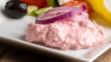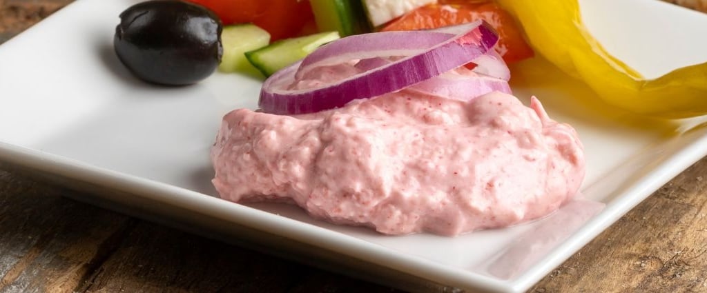 Une version végétal du tarama, rose et savoureuse, à base de haricots blancs de tofu fumé et de paillettes d'algues, parfaite pour l'apéritif
